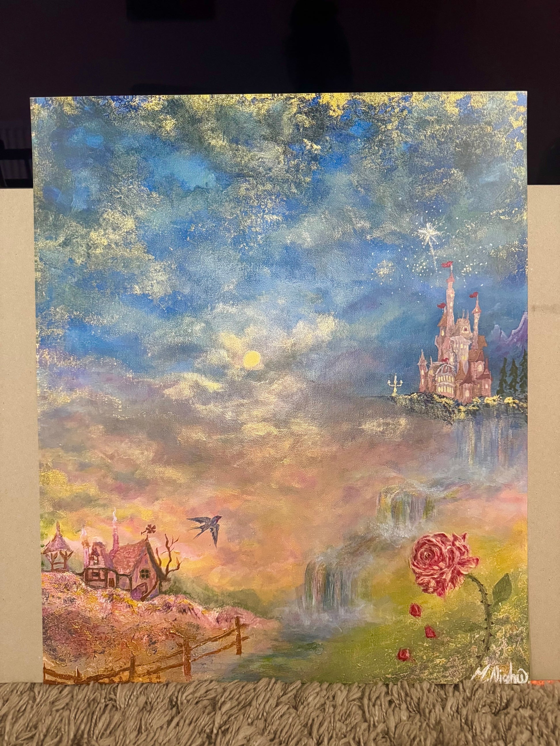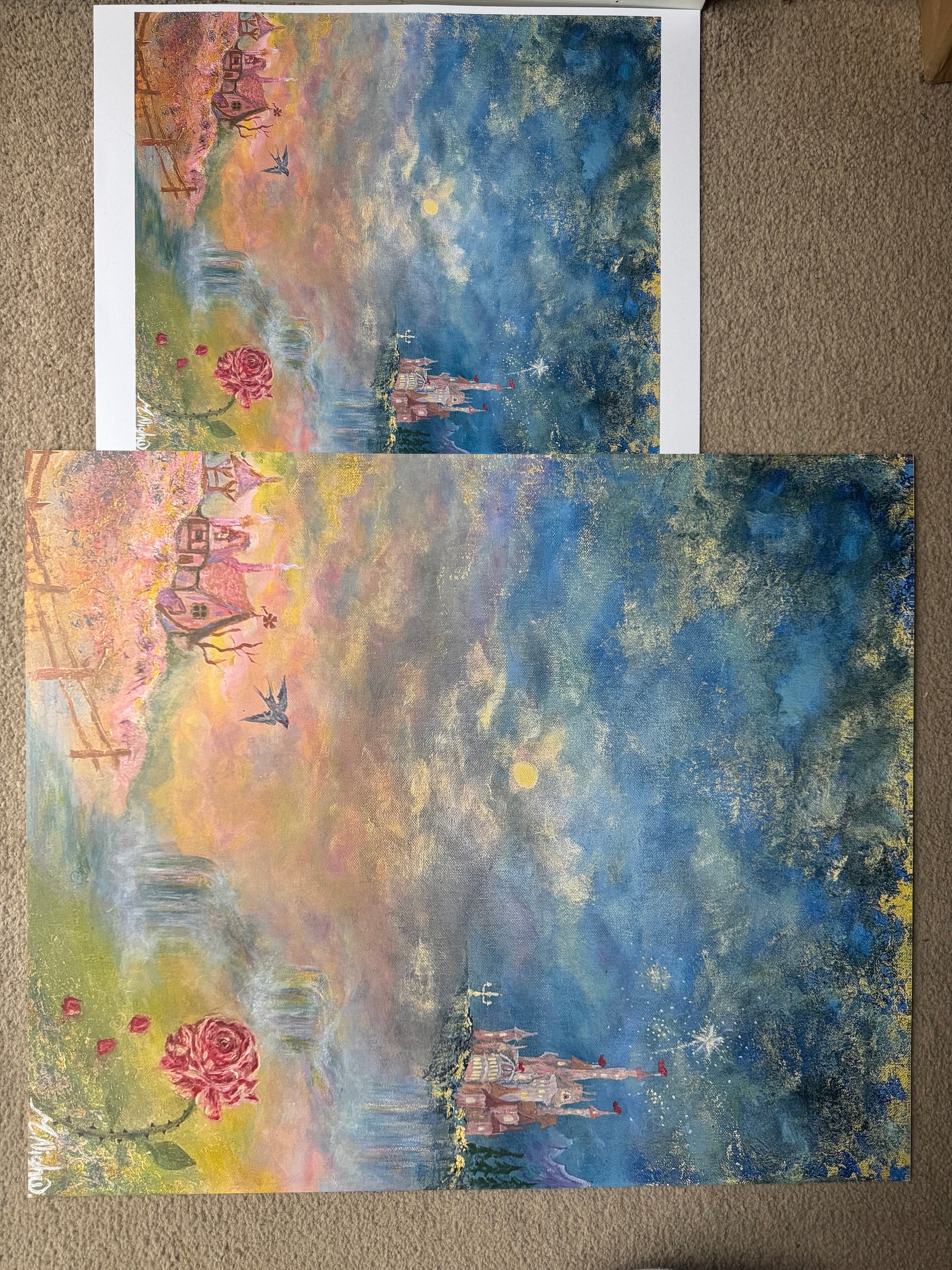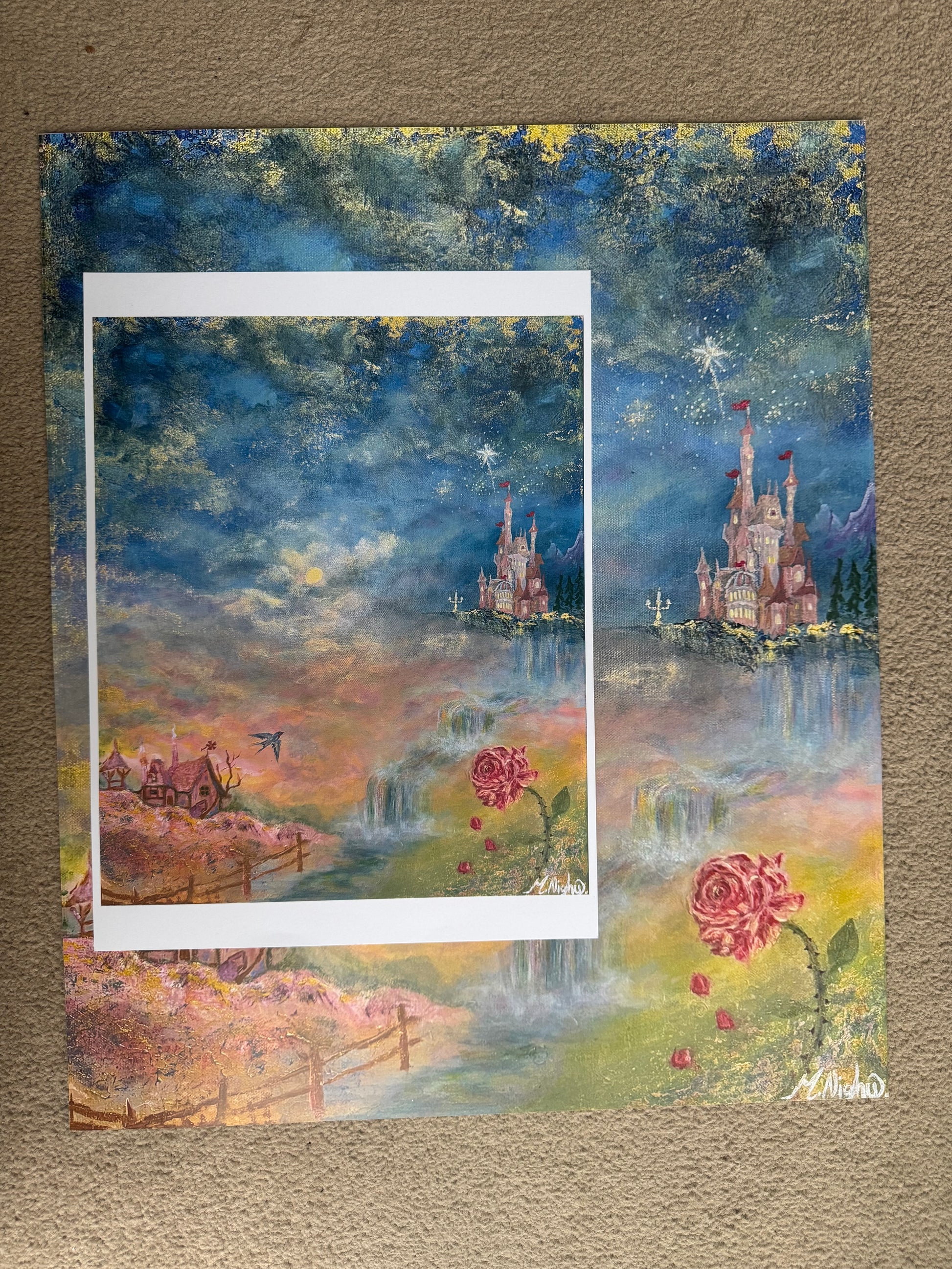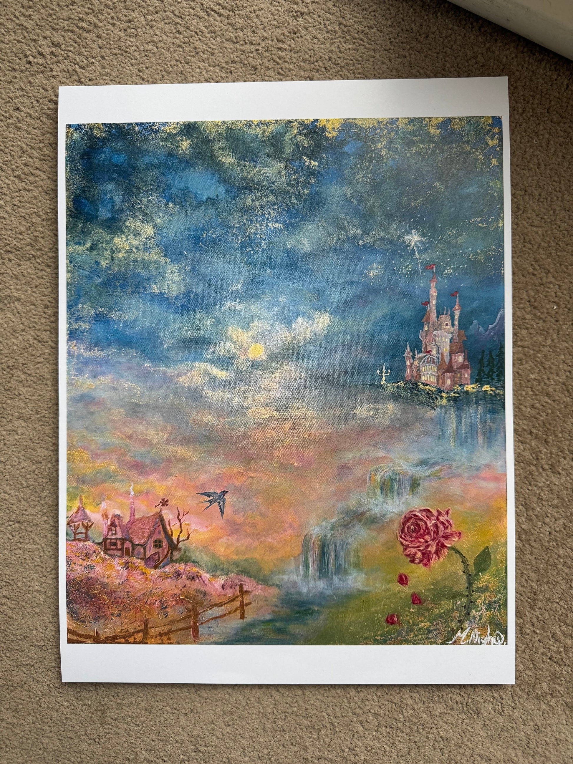 Prints of my Beauty and The Beast inspired painting. My prints are on high quality silk paper, with top quality ink, the hp indigo printer has bought the original painting to life beautifully. I’ve attached photos of the prints you’ll be receiving! All photos attached are of the small and large prints. I hope this art brings some magic to your home!
