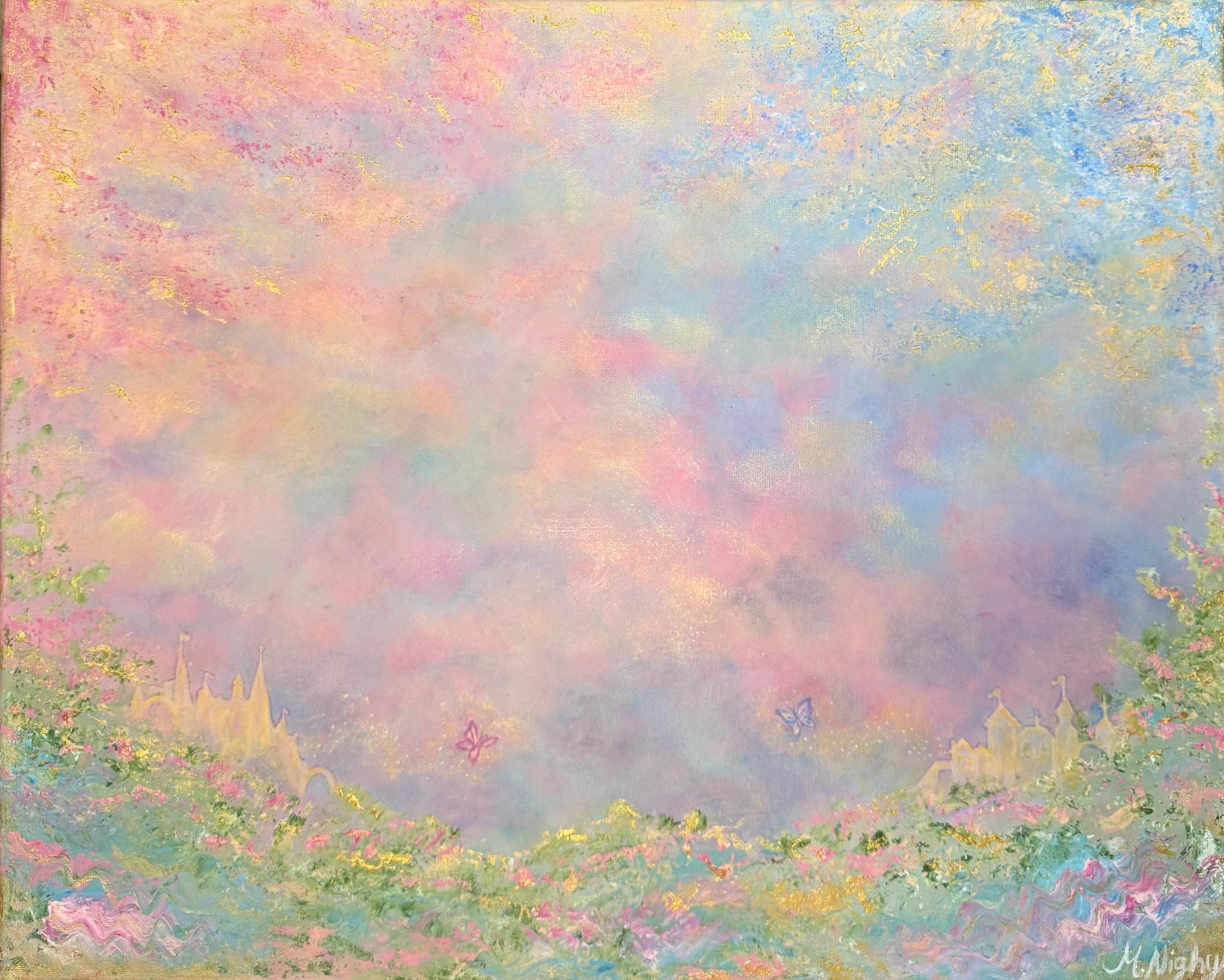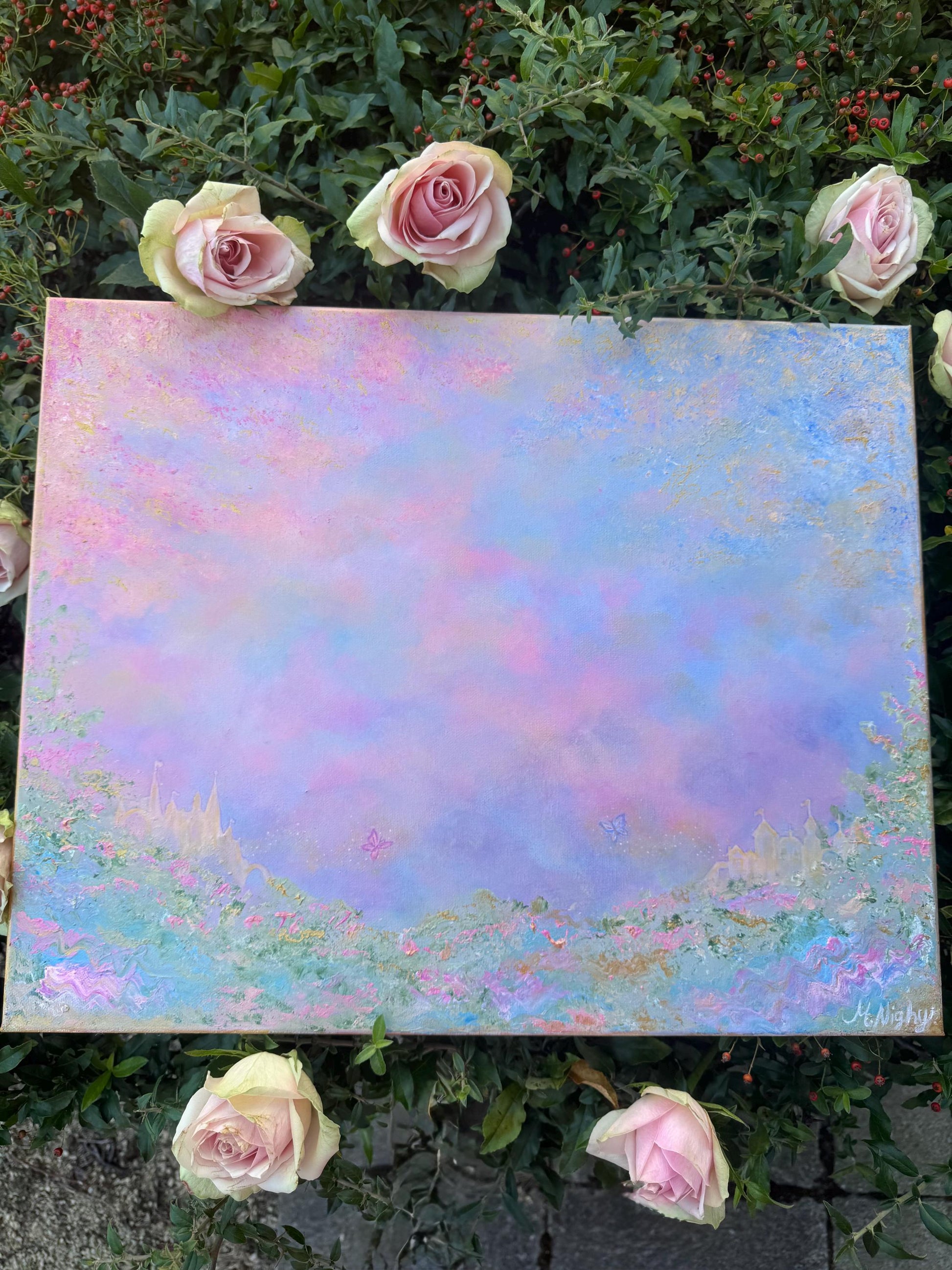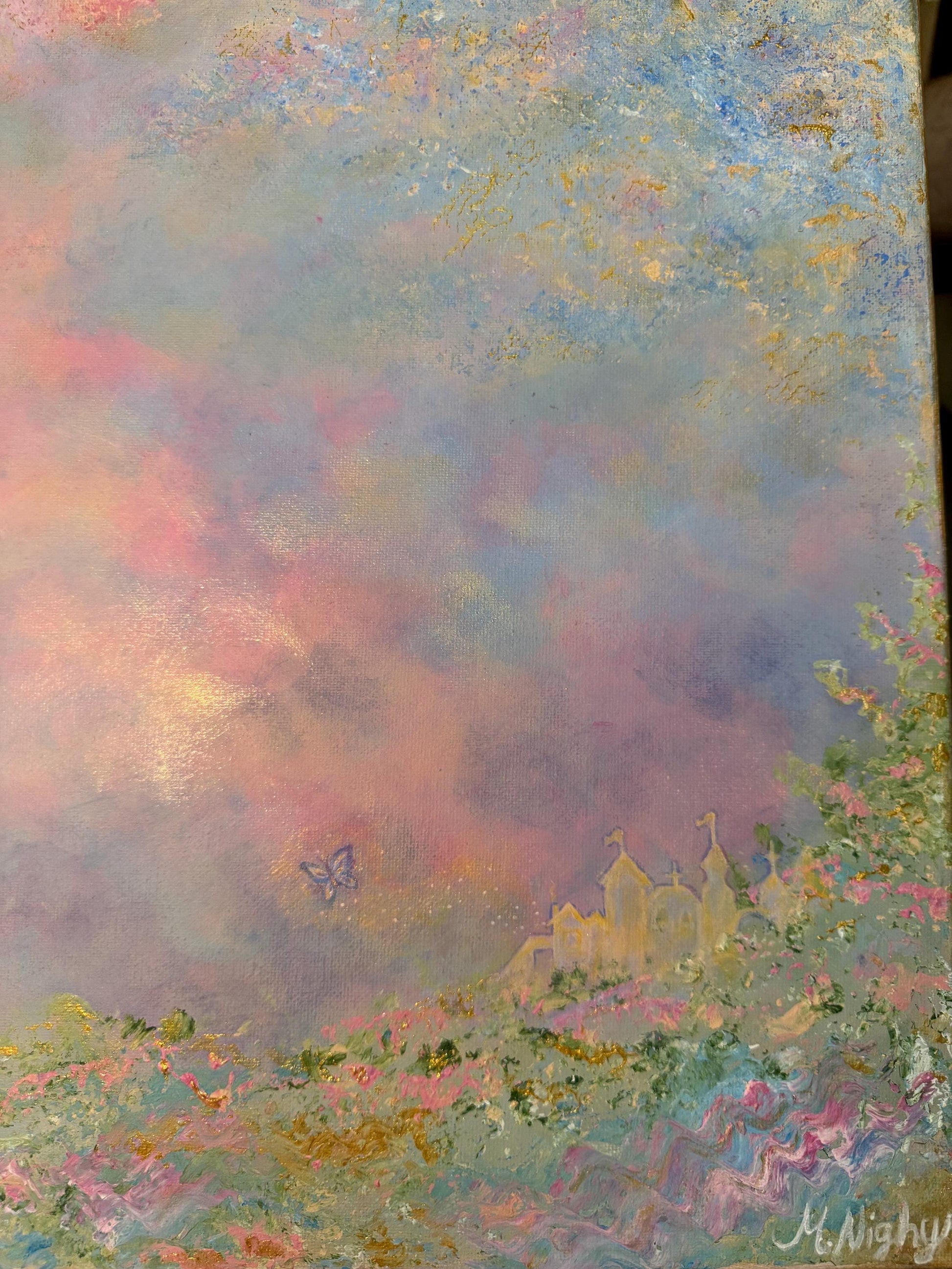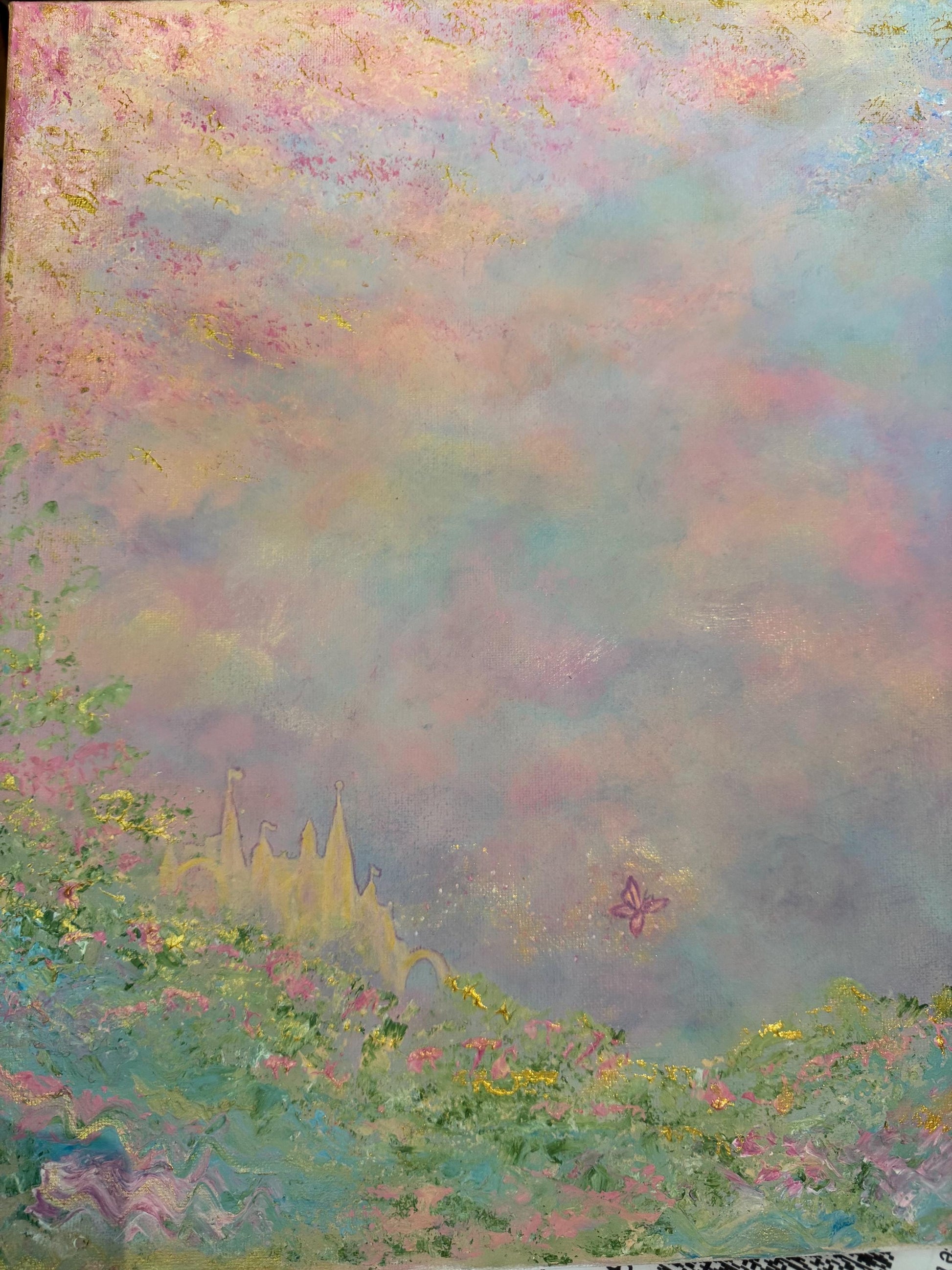 My newest 16x20inch painting inspired by Barbie - The Princess and the Pauper! It features a pink side and a blue side blending together with the butterflies meeting in the middle. Annalise's castle is on the left and Erica’s village is on the right. The gold paint shimmers in the light to give that magical Barbie feel :) The colours may appear different depending on the lighting, so I’ve attached lots of pictures in different spaces! The painting arrives signed and varnished for protection and longevity. I hope this brings some magic to your home 💝